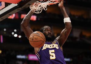 上半场比赛,湖人13篮板,太阳28篮板。