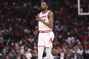 体育资讯4月18日讯 在火箭官方发布的明日首轮系列赛G1对阵湖人的伤病报告中,杜兰特(右膝挫伤)被列为出战成疑。